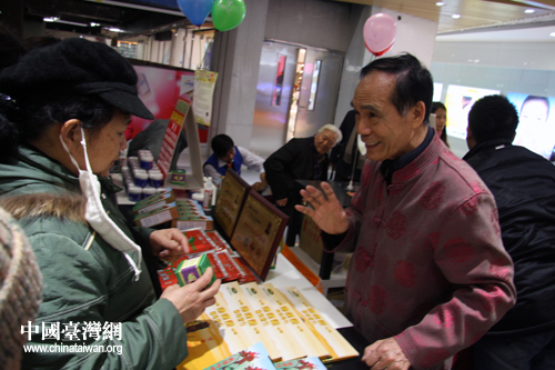 臺(tái)灣醫(yī)師賴先生向北京市民推薦藥品。(中國(guó)臺(tái)灣網(wǎng) 楊麗 攝)