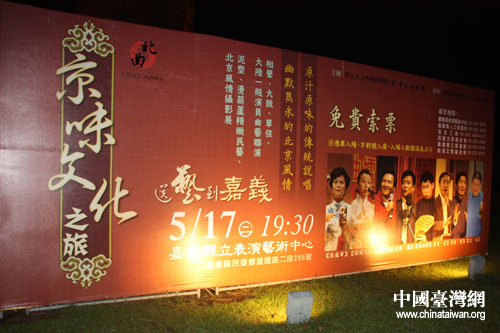 中國臺灣網5月18日嘉義消息“演出真的很贊啦,笑的我們快要掉眼淚了”。昨天晚上,嘉義縣表演藝術中心迎來了“第十一屆京味文化——臺灣嘉義親情之旅”一行的表演藝術家、工藝美術大師們。