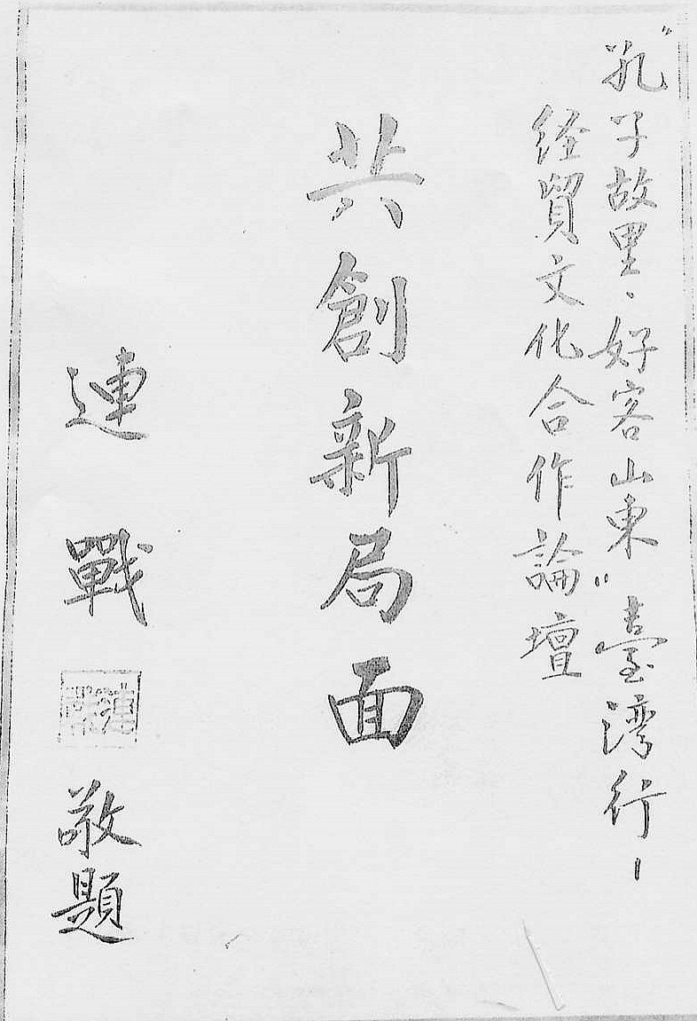 連戰為“孔子故里 好客山東”臺灣行題詞
