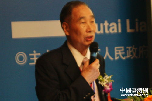 臺灣中藥商業(yè)同業(yè)公會聯(lián)合會理事長林所在“筑臺兩地中醫(yī)藥文化研討會”上發(fā)言 (中國臺灣網(wǎng) 王曉蕊 攝)