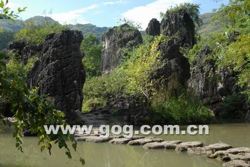 天星橋景區位于黃果樹瀑布下游7公里處,分為天然盆景區、天星洞和水上石林三大區。景區集山、水、林、洞為一體,石景、水景、樹景、洞景互相融合,靈性十足。“風刀水劍刻就萬頃盆景,根筆藤墨繪制千古絕畫”的對聯,道出了天星橋景區的神韻。