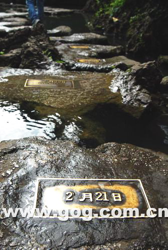 走入景區,最先經過的便是數生園。這是一片水上石林區,園中碧水環石,于水上奇石間,分布了延伸到前方的彎彎曲曲的石板小道。這些石板共有365塊,每一塊上都刻有日期,從1月1日走起,總有一塊上刻著你的生日。據說,若你在刻有你生日的石塊上停留片刻,會給你帶來整年的好運。沿石板小道一路走來,穿行于石壁、石壕、石縫之中,可見天然而成的一線天,縱有苗條身軀也得側身而行的側身巖,迷宮一般的尋根巖,交錯盤旋的鴛鴦藤和自成一景的美女榕,還有高老莊——當年《西游記》中豬八戒背媳婦的地方。數生園中步步為景,仿佛進入石林仙境,令人在奇石奇樹中不禁感嘆大自然的精巧工藝。