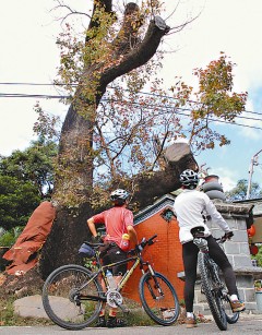 櫻花大道的路底有一棵百年老榕樹,和一旁的土地公廟相互依存并立,與其它山櫻花形成強烈對比,這兒是附近居民聊天休閑的場所,還有登山民眾也會在樹下停留,并參拜土地公,是單車族不錯的休憩據點!究旎钪軋蟆