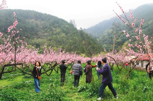 臺(tái)中縣武陵農(nóng)場(chǎng)水蜜桃花盛開(kāi),滿園粉紅映山巒,引來(lái)游客嬉游,花期可至4月底,依照今年花季盛況,7、8月肯定水蜜桃會(huì)盛產(chǎn)。