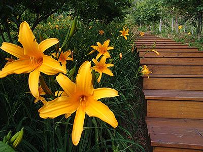 沐心泉金針花季將從五月份開始展開,五月中左右滿山花海的盛況將一直維持到九月份,是這個季節為人所津津樂道的賞花盛會。沐心泉園區廣大,游客可別嫌累,慢慢從從木棧道往上走,步道兩旁都是燦爛的金針花,一直延續到山頂。半山腰上有涼亭可以休息,爬的愈高,眺望的視野愈遠,那也是沐心泉美麗的精髓之處。