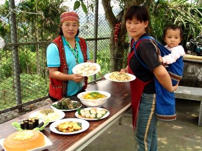 以飲食來(lái)說(shuō),那瑪夏里的布農(nóng)族風(fēng)味餐就相當(dāng)值得一試,它是一種未曾有過(guò)的味蕾感受,住在青山部落的翁美蘭小姐經(jīng)常受邀到各地料理特色鮮明的風(fēng)味餐,這些風(fēng)味餐點(diǎn)選用那瑪夏當(dāng)?shù)氐臅r(shí)材,料理出可口的佳肴,像是炸水蜜桃、糯米珍珠丸、桂竹筍炒山豬肉、黃金南瓜米粉,地道風(fēng)味小吃ginabo、地瓜糯米飯等各道菜色都讓饕客們?yōu)橹@艷。