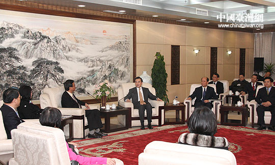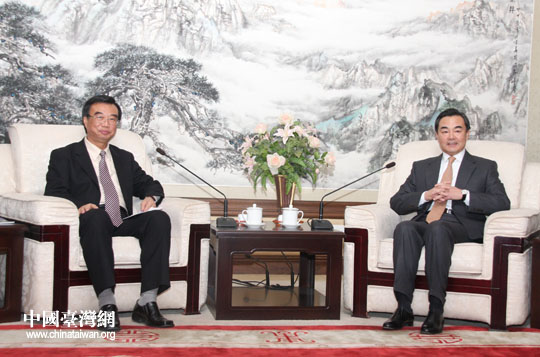 1月19日下午,中共中央臺辦、國務院臺辦主任王毅在京會見高雄市議會議長莊啟旺率領的高雄市經貿文化訪問團。(中國臺灣網 鐘寶華 攝)