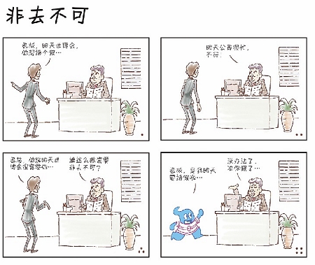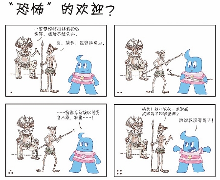 今天,世博日報獨家刊登與動畫片《海寶來了》同名的四格漫畫。