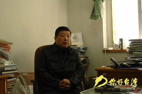 南京出版社編審、《南京民國建筑》主編之一盧海鳴博士(右)接受記者采訪(你好臺灣網 李林蔚 攝)