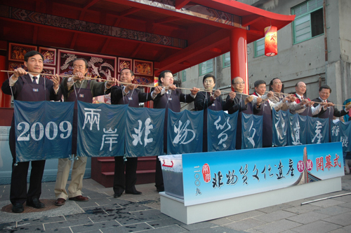文化部非物質文化遺產司副司長屈盛瑞和臺灣當局文化主管部門負責人盛治仁、臺中市市長胡志強等以創(chuàng)意藍染的方式,現場染出“2009兩岸非物質文化遺產特展”的字樣,揭開這一兩岸非遺交流盛事的序幕。盛治仁說,這是兩岸首度精心籌劃共同推出非遺特展,展現兩岸文化資產交流層面的深度與廣度,有利于增進雙方的了解。胡志強表示,兩岸首度攜手在臺中合辦非遺大型展覽,對于增進雙方感情甚有助益。
