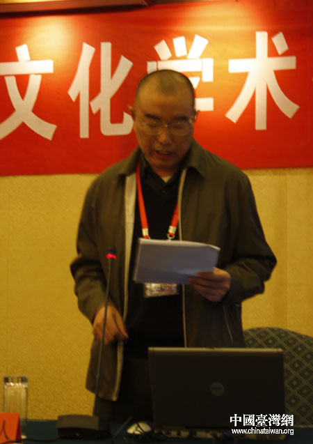 臺東大學南島文化研究所助理教授蔡志偉在研討會上發言(中國臺灣網 徐麗華 攝)