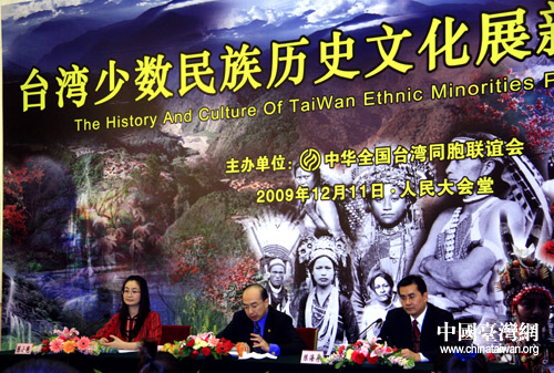 臺灣少數民族歷史文化展將于2009年12月21日——2010年1月6日在北京舉行,圖為11日該展覽新聞發布會在北京人民大會堂舉行(中國臺灣網 李徽 攝)