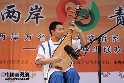 北京交通大學楊葛龍同學琵琶彈奏《十面埋伏》。(中國臺灣網 高琿 攝) |
