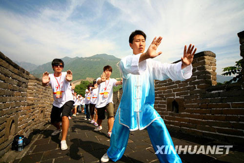 7月15日,參加“兩岸青年舞太極聚長城”活動的學(xué)生在長城上學(xué)練太極。新華社發(fā)(卜向東 攝) |