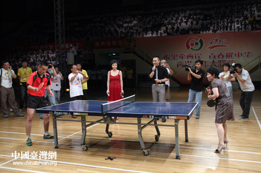 在“回顧奧運”環節,北京市團委副書記,前奧運冠軍鄧亞萍為兩岸青少年做了“奧運”和青春勵志主題演講。演講中,鄧亞萍高度肯定了奧運期間臺灣志愿者所付出的辛苦和努力。京臺兩地各派出學生代表與“乒乓女皇”進行了友誼賽,圓了他們了與奧運冠軍“過招”的夢想。