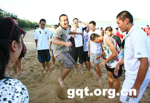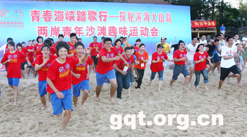7月19日下午,參加第四屆兩岸青年聯歡節·海峽西岸漳州青年行的兩岸青年們,游覽了漳州火山島自然生態風景區,在海灘上舉行沙灘趣味運動會。兩岸青年在美麗的火山島留下了美好的記憶。本網特約記者祝敏松攝影