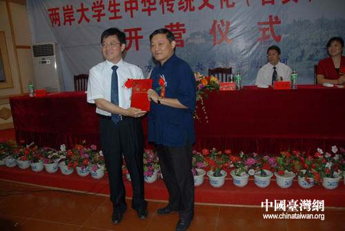 中國臺灣網(wǎng)7月21日消息 7月6日,“希望牽兩岸,青春耀中華”,兩岸萬名青年大交流江西分團,兩岸大學(xué)生中華傳統(tǒng)文化(吉安)研習(xí)營開營儀式在井岡山大學(xué)舉行。出席儀式的有江西省臺辦主任閻鋼軍、歐亞大學(xué)校長龔鵬程、井岡山大學(xué)校長張?zhí)┏且约凹彩形N⒚貢L劉連根,市臺辦主任苑建華等。張?zhí)┏恰忶i程、劉連根分別講話,副校長王伴青主持儀式。臺北海洋學(xué)院助理教授蒲彥光和井岡山大學(xué)學(xué)生代表付裕分別發(fā)了言。臺灣中央大學(xué)、中正大學(xué)、文化大學(xué)、淡江大學(xué)、佛光大學(xué),香港浸會大學(xué)等十幾幾所高校師生、學(xué)者以及井岡山大學(xué)師生100余人參加了儀式。