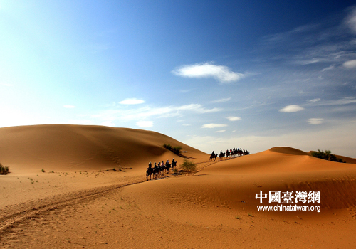 聽駝鈴聲聲,體會那悠遠的蒼涼和沙天相連的遼闊,也是人生最愜意的享受。武波 攝 (圖片來源:寧夏臺辦)