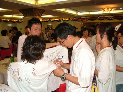 我們作為夏令營活動中的一員,在短短三天、四天的活動時間里,深深地感受到了:血濃于水,海峽兩岸一家親。夏令營閉營晚會上,臺灣的陳錦賜院長那句“海峽兩岸人民永遠手拉手、心連心!21世紀將是我們中國人的世紀!”至今仍回蕩在我的耳邊。而由陳院長等海峽兩岸師生共同合唱的《期待再相會》、《明天會更好》更是唱出了我們廣大營員們的心聲。
