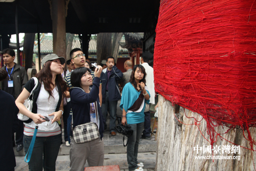 中國臺灣網(wǎng)8月23日運城消息 感受中華道德文化的源頭,體味中華傳統(tǒng)美德的脈絡(luò),22日,臺灣青年團(tuán)一行來到了位于山西省運城市的舜帝陵和關(guān)公廟,祭拜炎黃子孫共同的祖先。