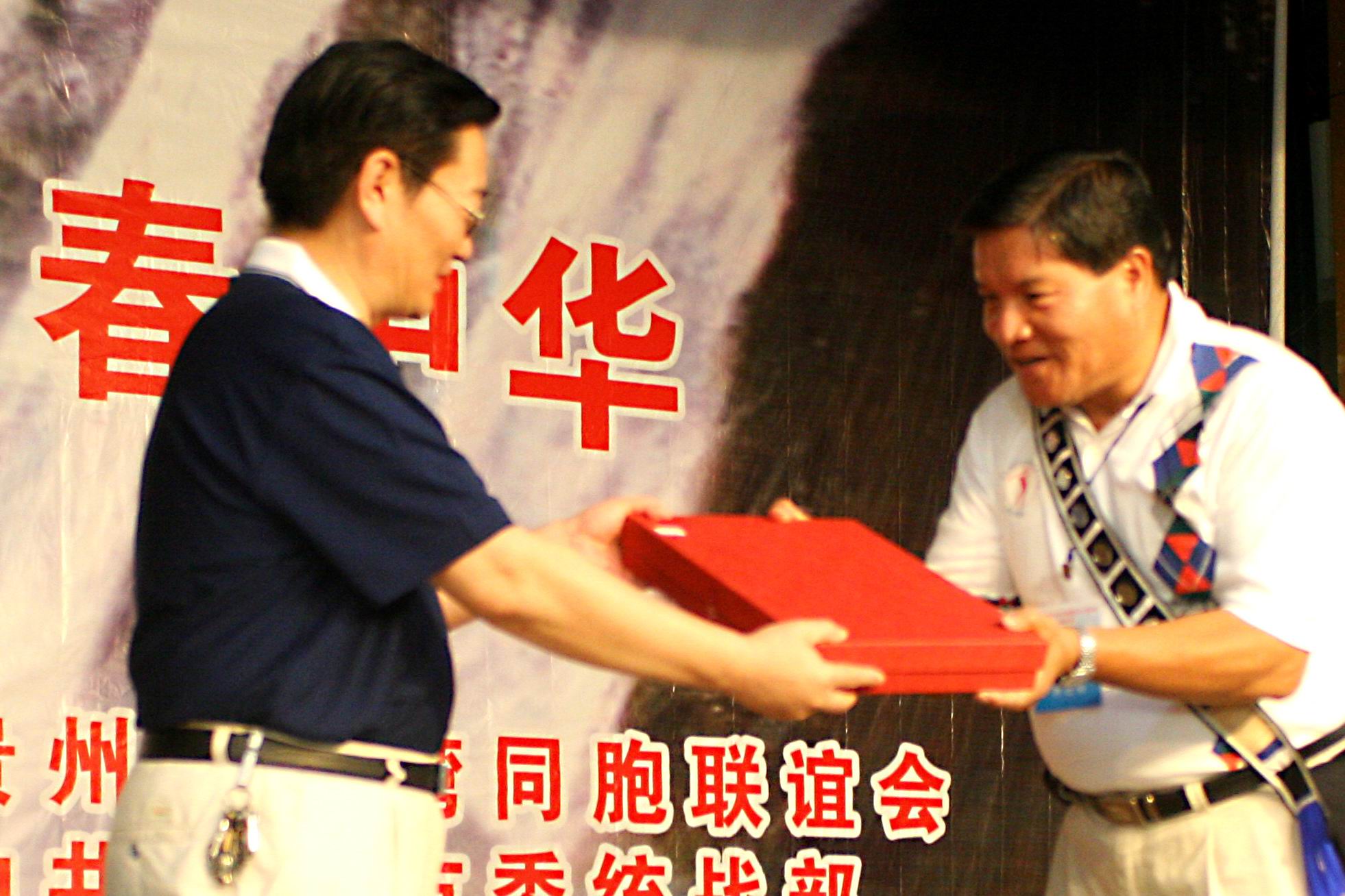 省委臺辦副主任孫輝與臺灣同胞互贈禮品