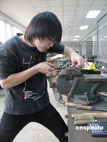 10月24日,首屆兩岸青年學(xué)生職業(yè)技能競(jìng)賽在天津舉行。經(jīng)過激烈角逐,臺(tái)灣新竹高級(jí)工業(yè)職業(yè)學(xué)校彭捷獲得中職組鉗工操作技能比賽第一名。中新社發(fā) 田齊 攝