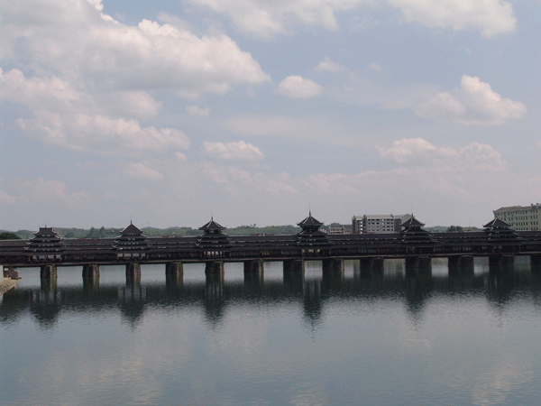 整個風雨橋為全木質結構,無一釘一鉚,整體設計建造簡潔明快,工藝雕刻細琢,既保留侗鄉建筑文化品位,又充分體現當代的原林建筑藝術,史稱“三楚西南第一橋”,為當今世界第一侗鄉風雨橋。