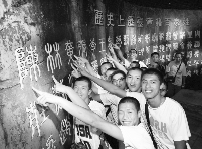 圖:臺灣青年參觀閩臺族譜對接館,在遷臺漳籍百家姓上尋找自己的姓氏。 祝敏松攝