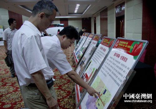 “2009年京臺青年科學家論壇”今天在北京開幕,圖為與會代表瀏覽北京特色農(nóng)業(yè)基地的展板。(中國臺灣網(wǎng) 張弛 攝)