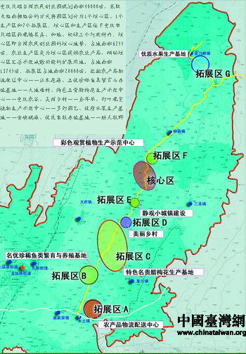 核心區域按照臺灣農民創業服務區、臺灣特色園藝生產區、臺灣鄉村風情觀光區、泛農產品加工區四大功能分區的規劃發展。 |
