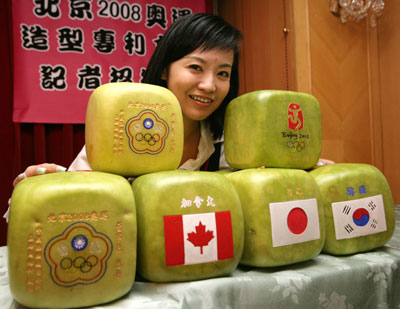 中新網(wǎng)10月17日電 據(jù)美國《世界日報(bào)》報(bào)道,奧運(yùn)會還沒開幕,臺灣“中華農(nóng)業(yè)交流協(xié)會理事長”簡楊柳推出的方形西瓜,外皮以雷射刻出“北京2008奧運(yùn)”的字樣,深獲喜愛,在北京已接獲2萬多個(gè)訂單。