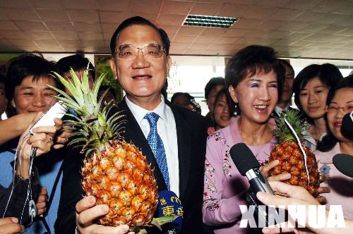 2006年4月20日,中國國民黨榮譽主席連戰參觀廈門臺灣水果銷售集散中心。連戰夫婦稱贊臺灣水果好吃,為臺灣水果做起“廣告”。新華社記者 王建華 攝