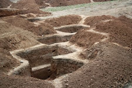 記者在現場看到,大菜園龍源世家墓地挖掘現場,古墓葬上已挖掘出了一簇簇大大小小的凹坑。戰國青銅劍就出土于該古墓群靠北的一處古墓群。這把青銅劍通長17.7厘米,寬2.8厘米,劍身扁細長,中脊微隆,橫斷面呈菱形。莖扁條狀,橫面似長方形。林州市文化局辦公室負責人楊玉東和林州市文物管理所所長李向明告訴記者,林州市大菜園龍源世家古墓葬是在房地產開發施工過程中發現,并于2002年至2003年進行系統大規模挖掘的戰國墓群,為了配合搞好文物保護,安陽市文物部門主動介入,展開了對該古墓葬進行現場挖掘和保護工作。古劍是3月9日在古墓葬中發現的,為戰國青銅冶煉技術提供了難得寶貴的實物資料。但目前還在進一步的系統挖掘中。由于對戰國青銅劍等古文物的挖掘剛開始,還未形成的初步的輪廓,因此,尚不能判斷還到底此次還有多少有價值的古文物同時發現,新發掘的戰國青銅劍已珍藏于當地文物部門。