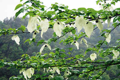 珙桐樹生活在羌族地區。它是第四紀冰川南移時幸存的“遺老”,故又被稱為植物“活化石”,是一種極為珍貴的樹種。它的稀有為它贏得了“綠色熊貓”的美名。每逢花期到來,它就會盛放白花,一樹璀璨,仿佛無數飛翔的和平白鴿。羌族同胞把它形象地叫作“鴿子樹”。它耐寒的特質、頑強的生命力,象征著中華民族無比堅韌的生存品質。