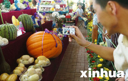 8月15日,一位參觀者在植物展區拍攝展品。當日,為期7天的第六屆中國長春國際農業食品博覽(交易)會在吉林長春市拉開帷幕,此次博覽會將推出現代農業展、科普大集、良種良法推介、農業機械及食品加工機械展、農民新居及農村能源環保項目展等豐富多彩的活動。新華社記者 徐家軍 攝