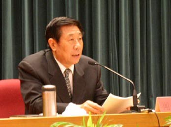 全國人大法制委員會副主任委員、全國人大常委會法制工作委員會主任胡康生作中心發言