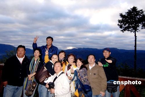 2008年“十一”長假期間,來自祖國大陸的游客興致勃勃觀看臺灣著名風景區阿里山日出。“十一”長假期間大陸居民“赴臺游”熱情高漲。 中新社發 劉可耕 攝