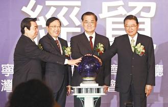 遼臺經(jīng)貿(mào)論壇昨在君悅飯店舉行,陳政高(左二)、邴志剛(左一)、連戰(zhàn)(右二)、江丙坤(右一)共同主持開幕。記者陳柏亨/攝影(臺《聯(lián)合報》)