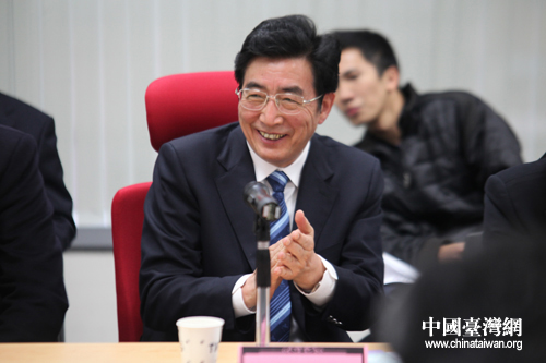 郭金龍與TVBS員工進行座談(中國臺灣網 趙輝 攝)