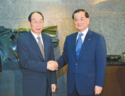 九日,福建省委書記尤權在臺北市會見中國國民黨榮譽主席連戰。張永定攝