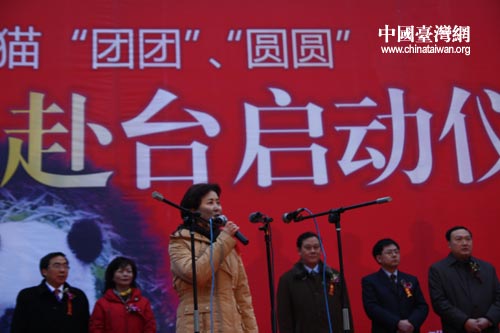 12月23日,四川雅安碧峰峽基地舉行大熊貓赴臺啟動儀式。中共雅安市委副書記張錦明宣布贈臺大熊貓“團團”、“圓圓”啟程。中國臺灣網 田云鵬 攝