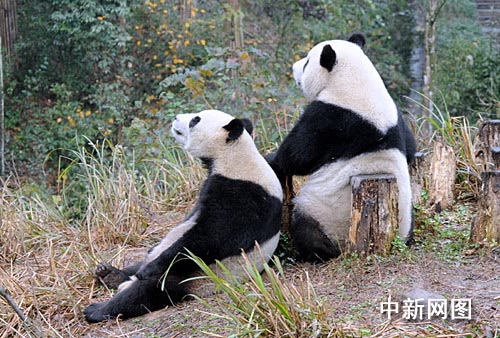 在鏡頭面前團團圓圓大秀“恩愛”(12月22日攝于四川雅安)