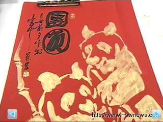 用中國(guó)最經(jīng)典的墨寶畫出兩只超級(jí)可愛的大熊貓,除了慶祝新年的到來,更希望團(tuán)團(tuán)圓圓的好兆頭,能在這波不景氣當(dāng)中,祈求臺(tái)灣經(jīng)濟(jì)能夠圓圓滿滿。(章潘)