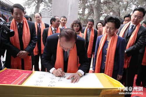 中國臺灣網4月17日鄭州消息 4月17日,中國國民黨副主席林豐正與夫人黃雪一行到新鄉比干廟拜謁。
