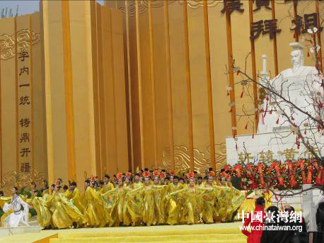 拜祖現(xiàn)場氣氛隆重而熱烈。黃帝故里拜祖大典已被國務(wù)院公布為國家級非物質(zhì)文化遺產(chǎn)。本次由第十屆全國人大常委會副委員長、中華炎黃文化研究會會長許嘉璐先生讀《拜祖文》,邀請毛阿敏、林妙可領(lǐng)唱《黃帝頌》,由來自北京、香港、澳門、臺灣兩岸四地小朋友放飛和平鴿等。