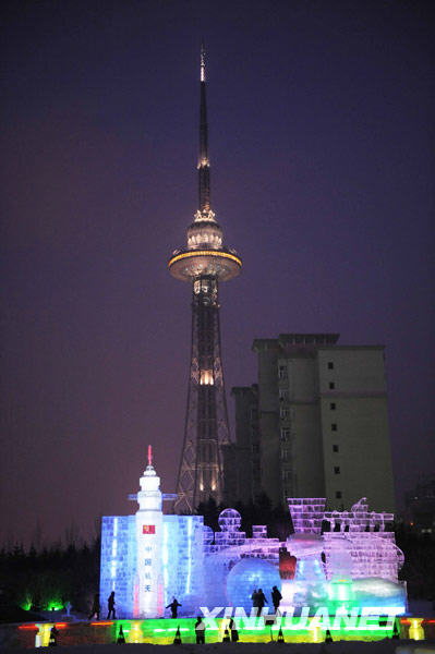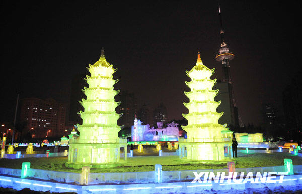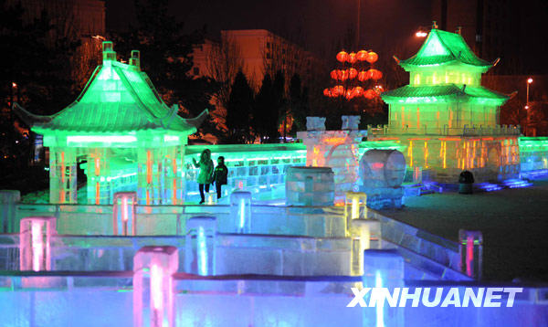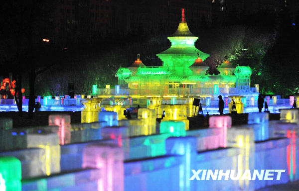 冰城哈爾濱街頭的冰燈紛紛點亮,給冬季的冰城之夜增添了色彩,吸引了眾多市民、游人欣賞。