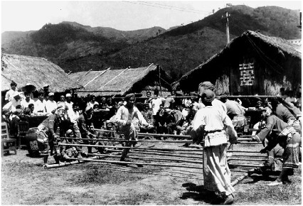 黎村辦喜事跳起竹竿舞。一九五七年十月攝于通什。蔡自強攝