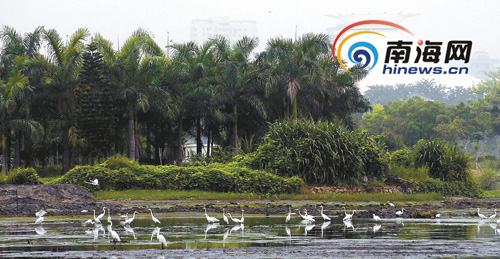 12月20日,建設(shè)中的白鷺公園大批白鷺云集覓食。海南日?qǐng)?bào)記者蘇建強(qiáng)攝
