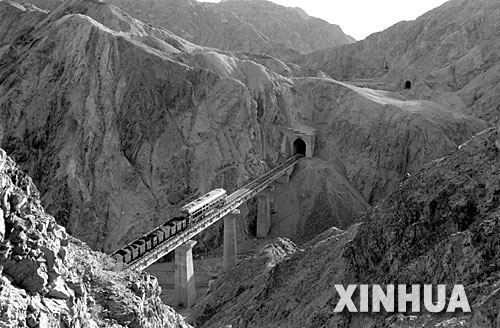 青藏鐵路第一期工程西寧至格爾木段泉吉峽隧道群。 青藏鐵路從西寧至拉薩全長1956公里,是世界上海拔最高、線路最長、穿越凍土里程最長的高原鐵路。把鐵路修進西藏是幾代中國人的夢想,但這一想法直到新中國成立后才逐漸變為現實。青藏鐵路一期工程西寧至格爾木段于1958年開工,1984年交付營運。但限于當時國家的經濟實力以及高原、凍土等筑路技術難題尚未解決,格爾木至拉薩段被迫停建。2001年6月,國家總投資330.9億元動工修建青藏鐵路二期工程。這一工程跨越昆侖山、唐古拉山,通過多年凍土層和大片“生命禁區”,是人類鐵路建設史上亙古未有的穿越。它的建成將為神秘而古老的青藏高原帶來新的生機和活力! 新華社發