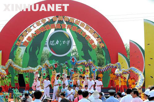 5月30日,南京橫溪農(nóng)民在臺(tái)灣農(nóng)民創(chuàng)業(yè)園揭牌儀式上進(jìn)行舞龍表演。